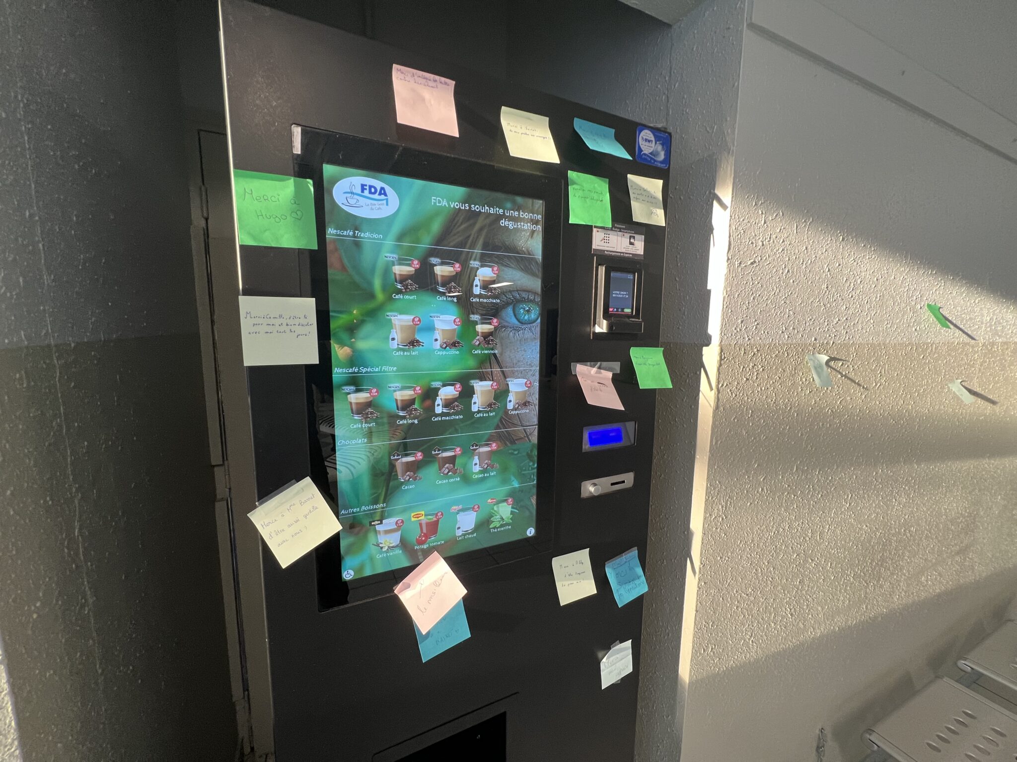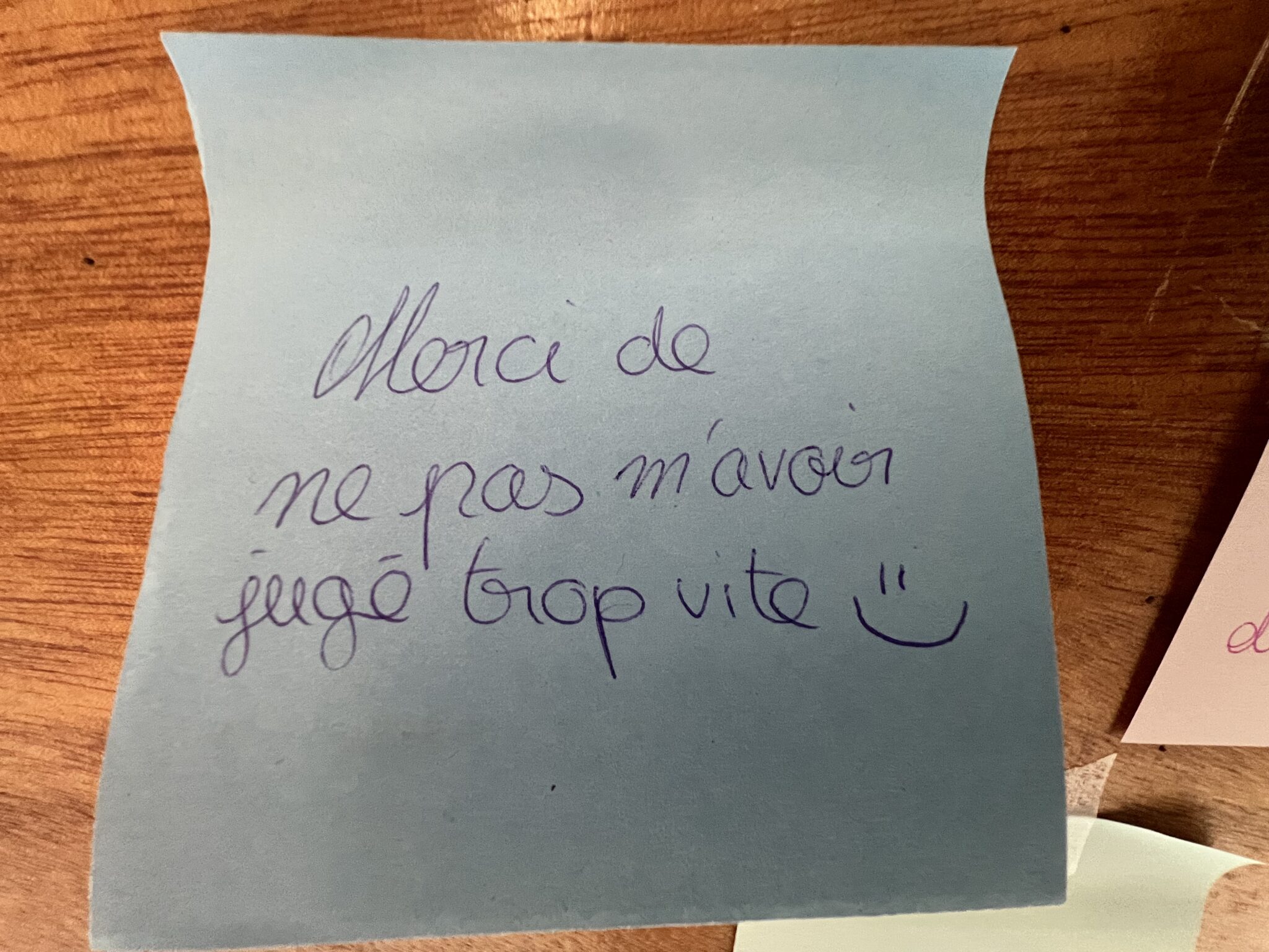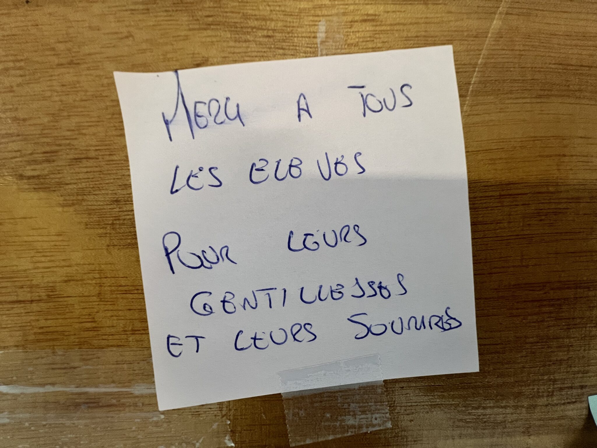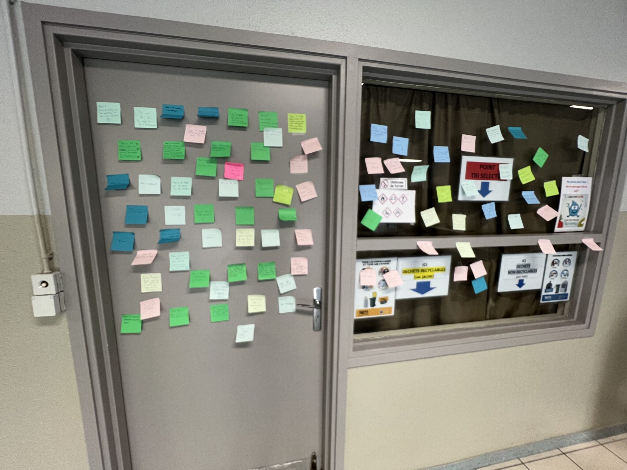 Du côté du lycée, les CPE ont proposé une initiative à laquelle les élèves présents se sont prêtés avec enthousiasme. Ecrire un petit mot de remerciement à une personne choisie sur un post-it et le disposer à l’endroit de leur choix dans le hall d’accueil des élèves.