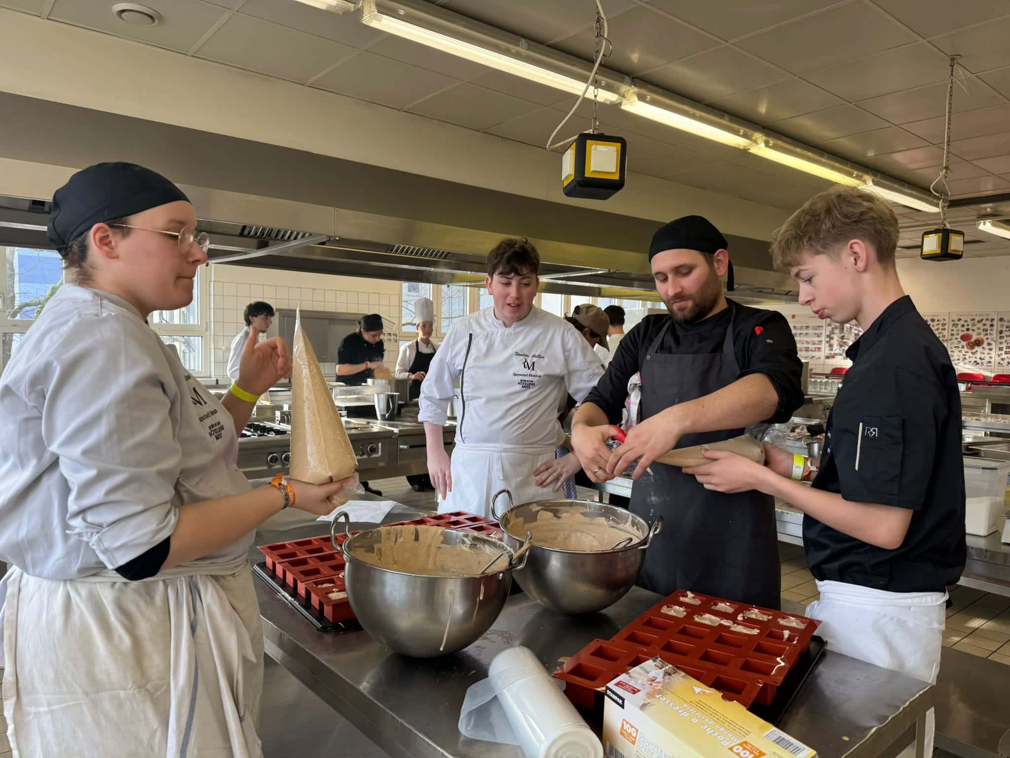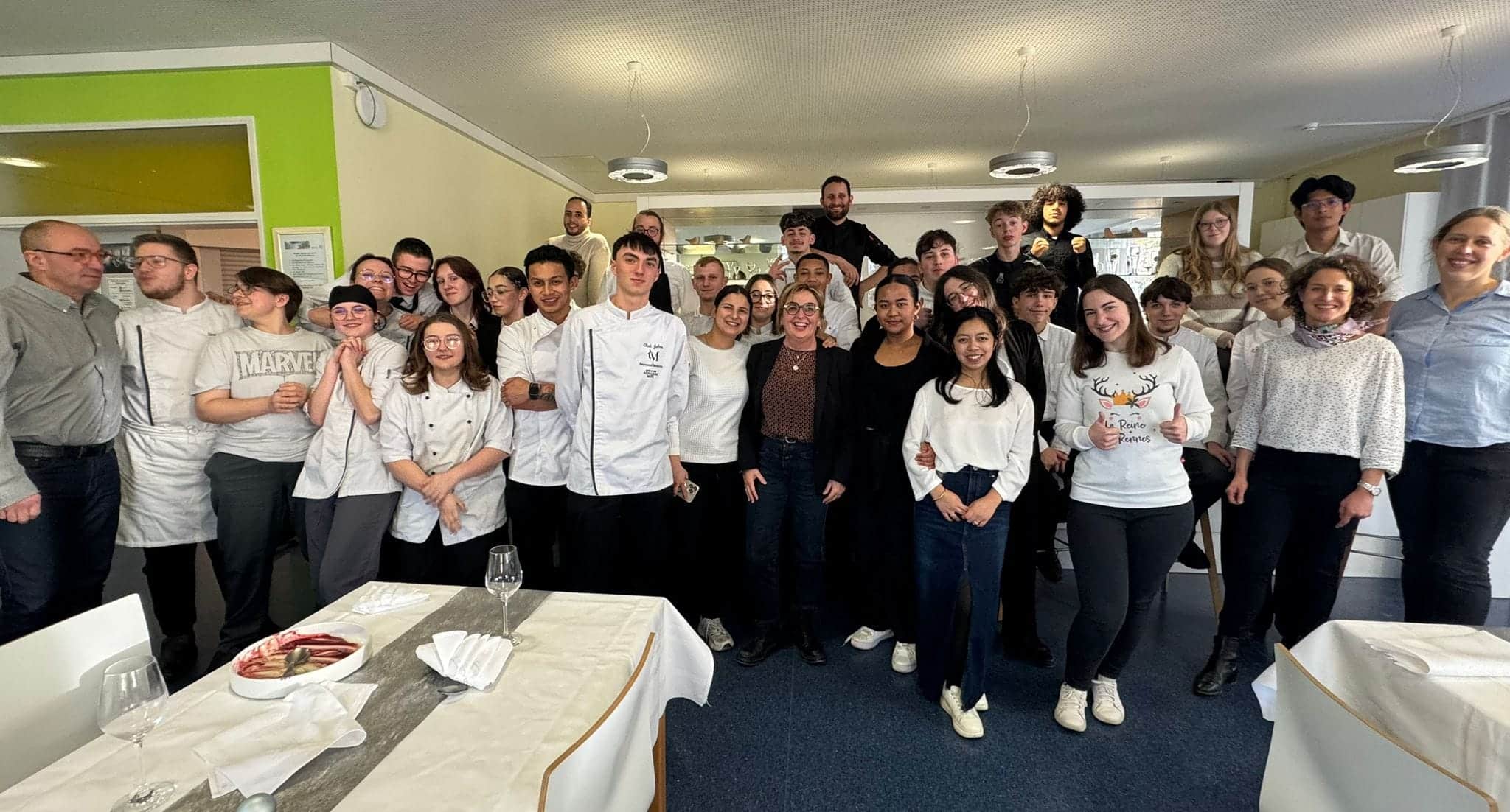Le groupe a participé à une animation linguistique qui a permis d’établir un contact entre les élèves allemands et les élèves français. Puis les élèves cuisiniers ont préparé ensemble le déjeuner tandis que les élèves en service faisaient la mise en place . Nous avons ensuite dégusté le bon repas.